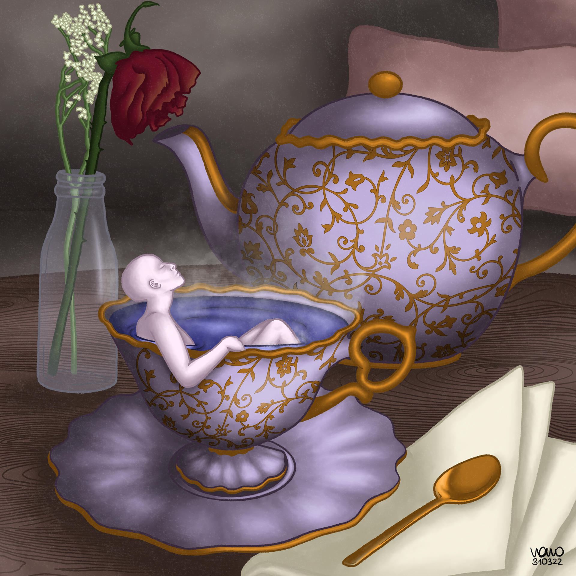This picture is a surrealistic illustration I made with Procreate. It shows a person who is trying to find a connection to herself and her inner peace.